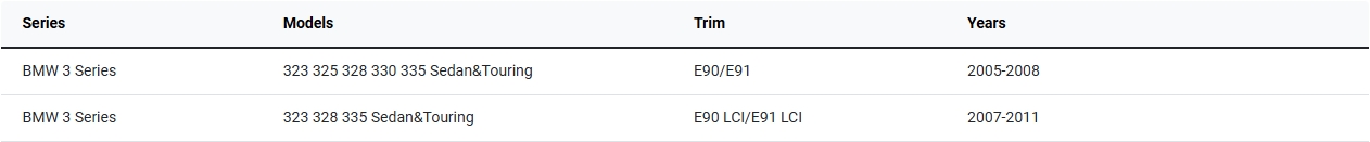 For BMW 3 Series E90/E91 323 325 328 330 335 Sedan&Touring (2005-2008). BMW 3 Series E90 LCI/E91 LCI 323 328 335 Sedan&Touring (2007-2011):